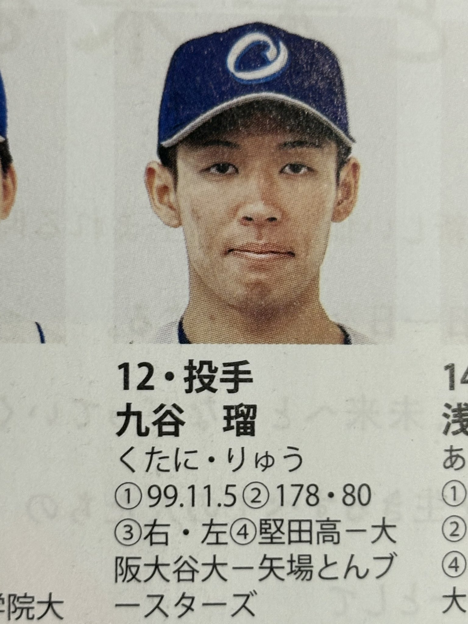 九谷瑠(くたに りゅう)は1999年11月5日生まれ、滋賀県出身の右投左打のピッチャーです。