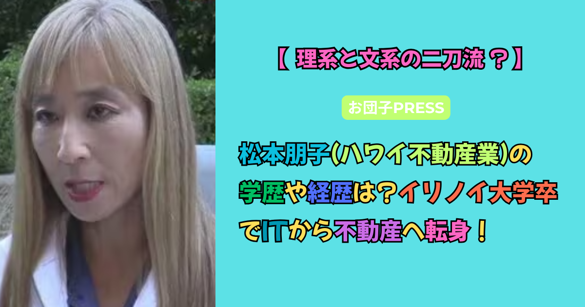 松本朋子(トモコ・マツモト)の学歴はアメリカのイリノイ大学アーバナ・シャンペーン校!