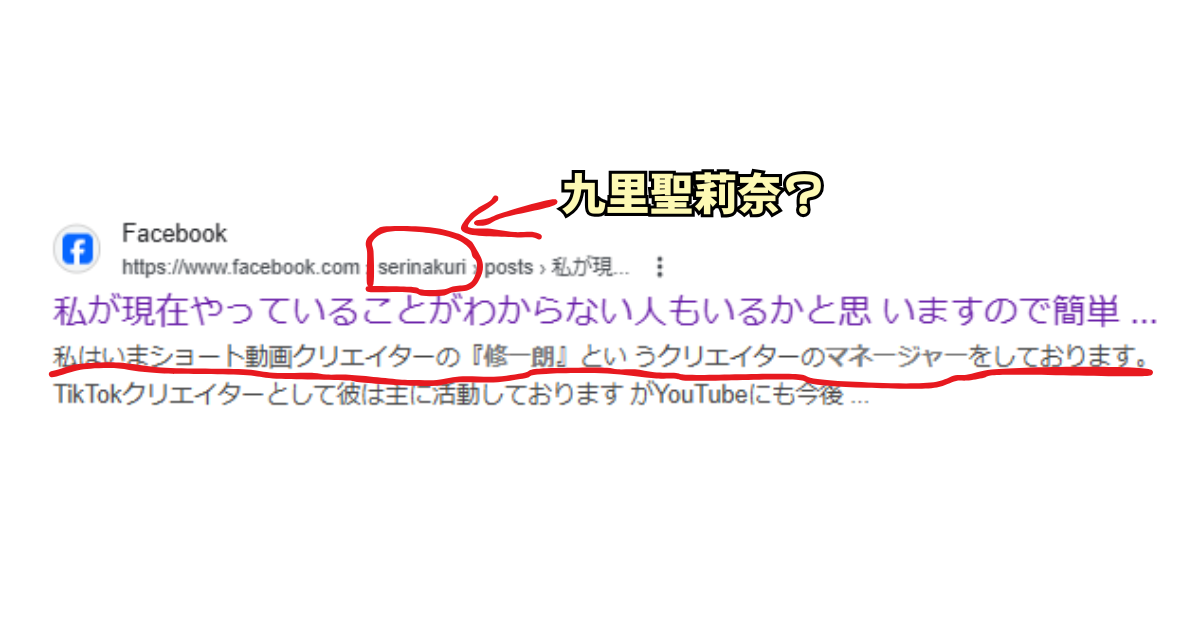 そこでネットの検索窓に「修一朗 マネージャー」と入力すると、FacebookのページURL表記の中に「serinakuri」も見受けられました。
