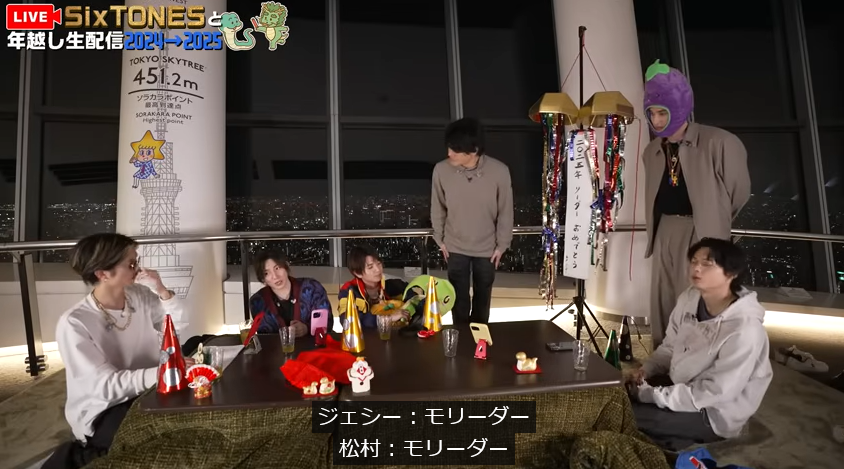 2023→2024、2024→2025の2年連続で、SixTONESは東京スカイツリー展望台から年越しYouTube生配信を実施。