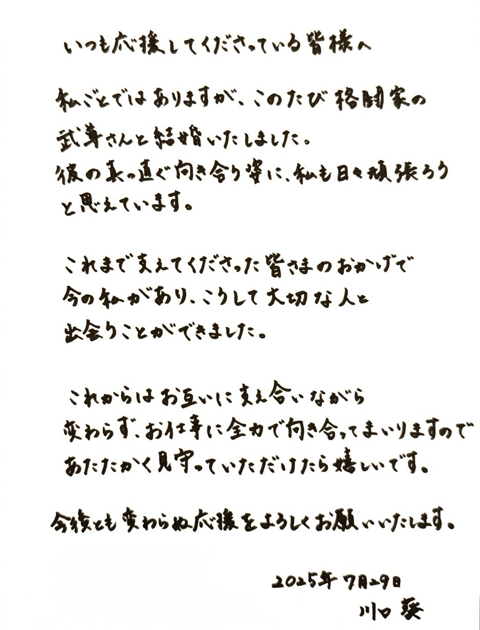 そして、2025年7月29日の武尊選手の誕生日の日に、川口葵さんとの結婚発表がされました!